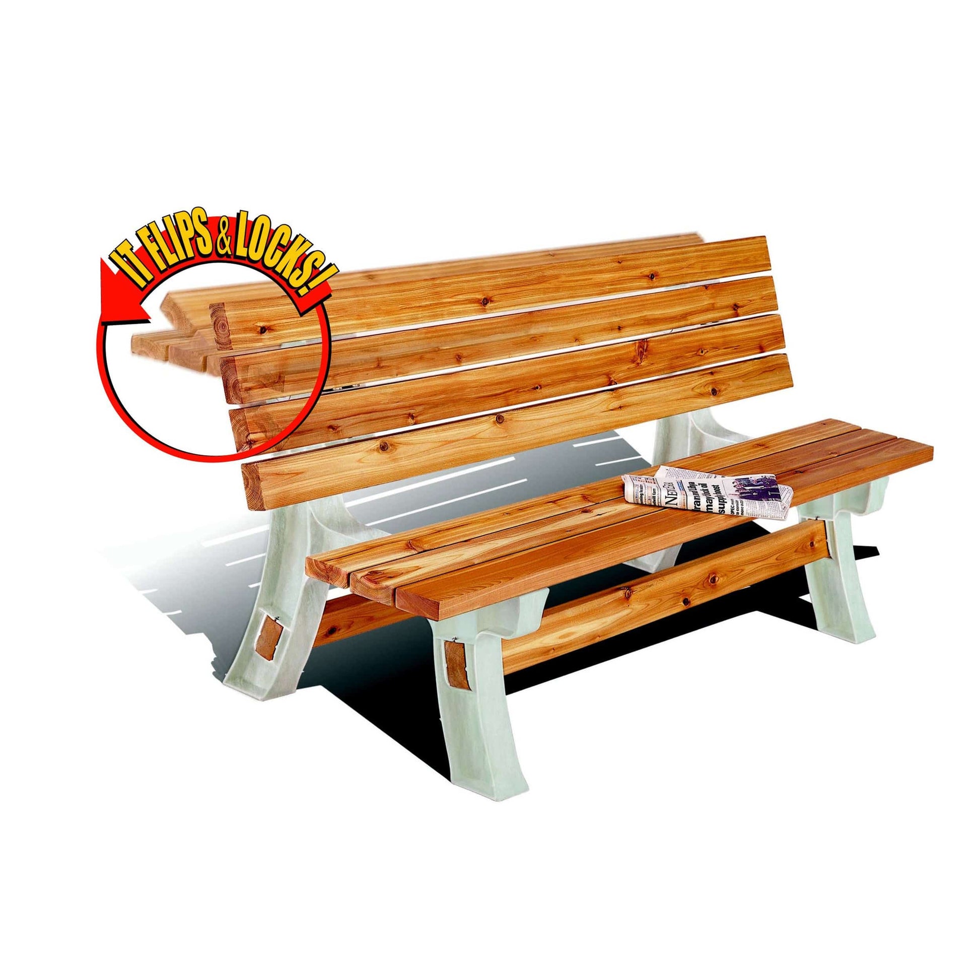 Just add 2x4 lumber to make your 2x4basics® Flip Top BenchTable™. Make a comfortable, sturdy bench and table up to 8 feet (2.4 m) long. All it takes is a flick of the wrist to flip your bench into a table. The patented slide-lock safely secures your Flip Top BenchTable in the table position in seconds, without tools. The BenchTable is both an outdoor bench and a picnic table. You can even slide two BenchTables together to seat eight or more adults comfortably. You can simply use one for smaller families, individuals, or for tight areas like balconies.